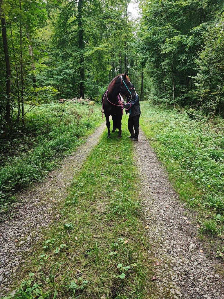 Unsere Tiere , genauer gesagt unsere Pferde , sind auf ihre Weise besonders in ihrem Händling. Der eine kam als „ kein Anfänger Pferd“ er macht heute den Reitunterricht und das Kinderturnen, wie auch die Hippo mit unseren Klienten . Aber er hat kein Maß im Fressen . Er würde alles was da ist alleine fressen, den Bauch hängen lassen, die Rückenmuskulatur verlieren und nicht mehr laufen wollen . Mit „Eimerfutter“, hat er Gas, so das er trainieren muss um friedlich zu sein. Bei ihm ist es ein ganz besonderes Geschenk, wenn er in der Gruppe langsam trabt, gar den Kopf nach unten nimmt.